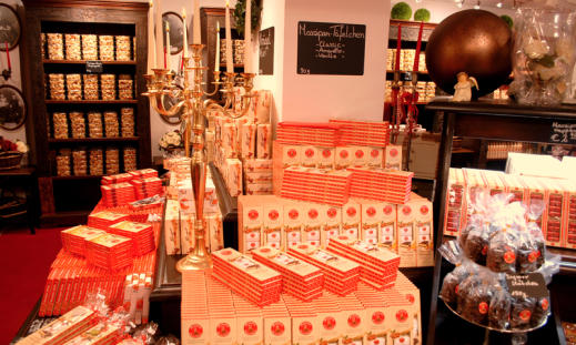 Alles was das Marzipan-Herz begehrt: Auf über 400qm Verkaufsfläche warten Lübecker und Königsberger Marzipan, Marzipan-Liköre, Marzipan-Nudeln, Marzipan-Kaffee, Marzipan-Tee, Marzipan-Seife uvm. auf Sie! Auch Pralinen und Schokolade in diversen Ausführungen oder verschiedenste Souvenir- und Dekoartikel - liebevoll verpackt, mit und ohne Marzipan- gibt es hier zu erstöbern.